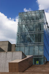 (上・左)見上げるように写しているために建物が後ろに倒れたように見えます。 (上・右)垂直線を真っ直ぐに直せば安定感がでます。