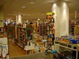 (上・右)ステーショナリー・ショップの店内です。 (上・右)黄みをを押さえて、全体の色を補正しています。