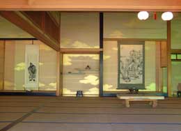 (上・左)広角レンズでドーム型の天井を写していますが、太い柱が左に曲がって写っています。 (上・右)柱を真っ直ぐに補正して、ステンドグラスを大きくして中央に移動して印象的に表現しています。
