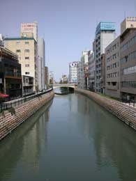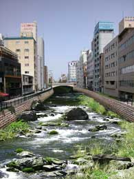 (上・左)都会の真ん中を流れる運河を、(上・右)渓流の写真に変えて合成しています。