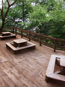 (上・左)冬の風景です。(上・右)床の木を張り替えたように修整し、木立を合成して、夏の景色に変えています。